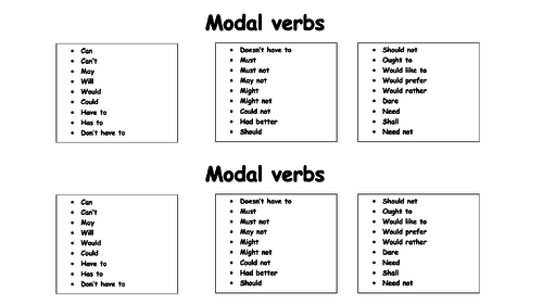 If you're looking for some modal verb activities, games, worksheets or lesson plans, then you're certainly in the right place. Modal verbs chart could/should/would/must have. In this free ability modal verbs game, students play bingo by finding classmates who have certain abilities. Modals of politeness / answers. These differentiated modal verbs worksheets let ks2 children practice their writing skills in a fun and simple way.